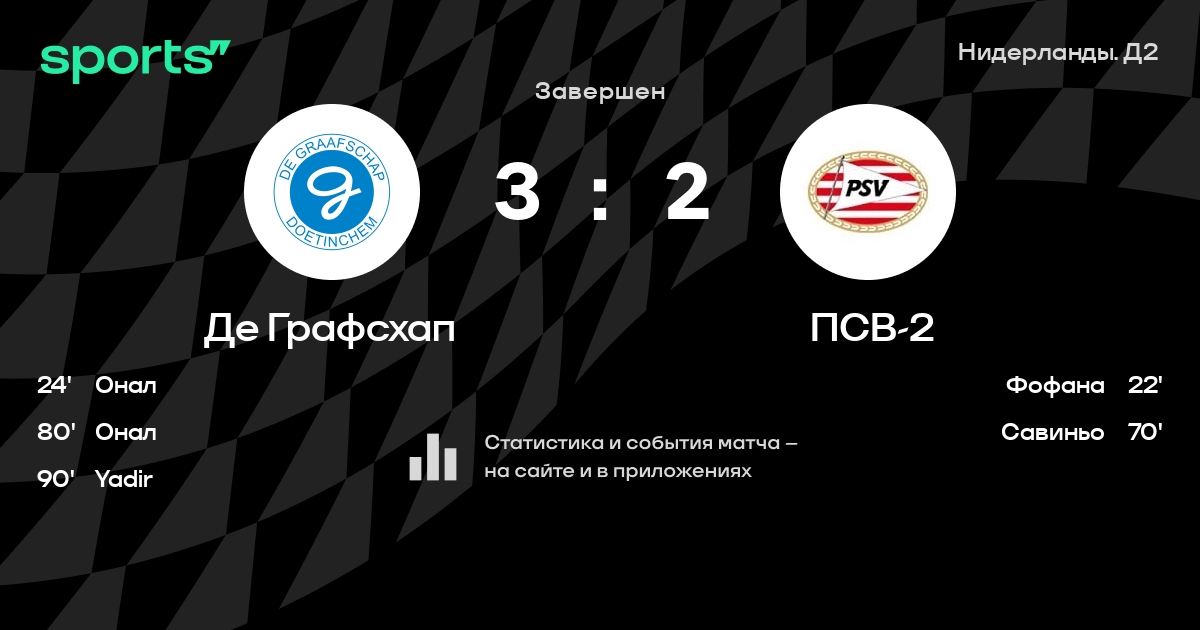 Де Графсхап – ПСВ-2: ПСВ-2 забивает в 9 из 11 последних матчей против этого соперника