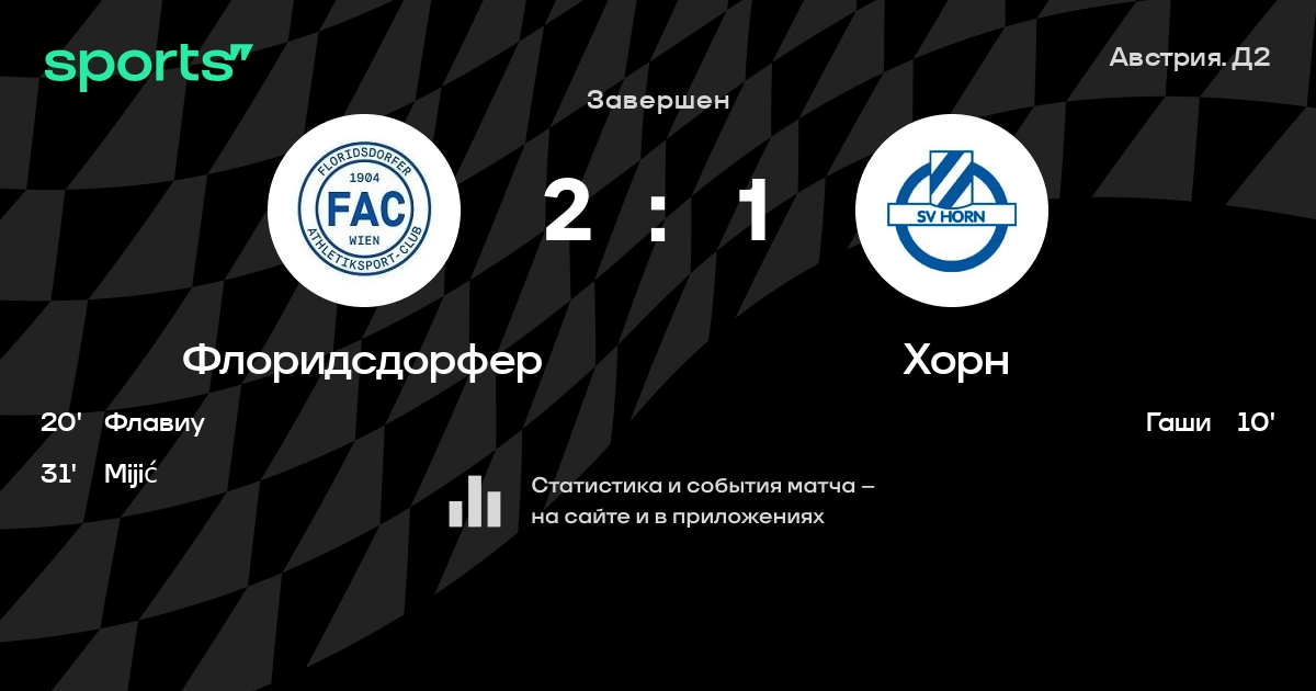 Флоридсдорфер – Хорн: Флоридсдорфер забивает в 12 последних матчах против этого соперника