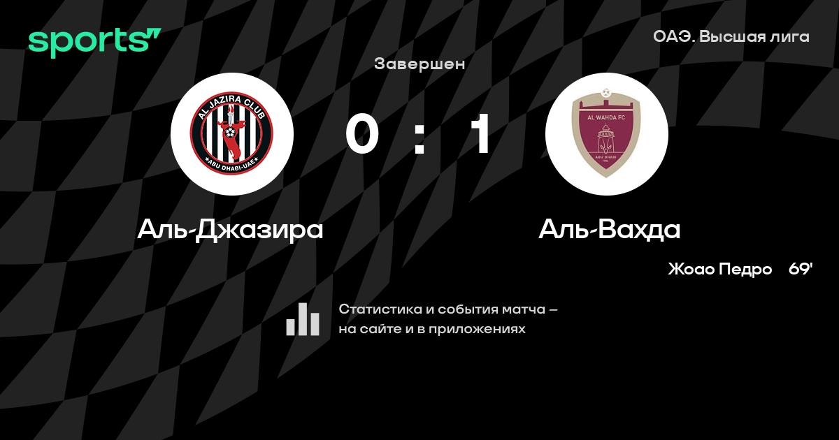 Аль-Джазира – Аль-Вахда: Аль-Вахда не проигрывает в 6 из 8 последних матчей против этого соперника в турнире «Высшая лига»
