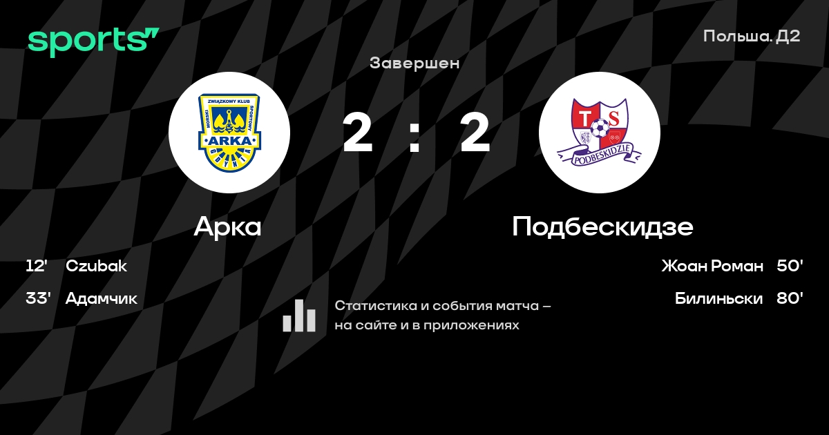 Арка – Подбескидзе: Арка не проигрывает в 6 последних матчах против этого соперника