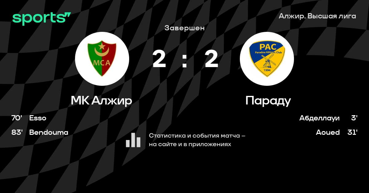 МК Алжир – Параду: МК Алжир забивает в 13 последних матчах против этого соперника