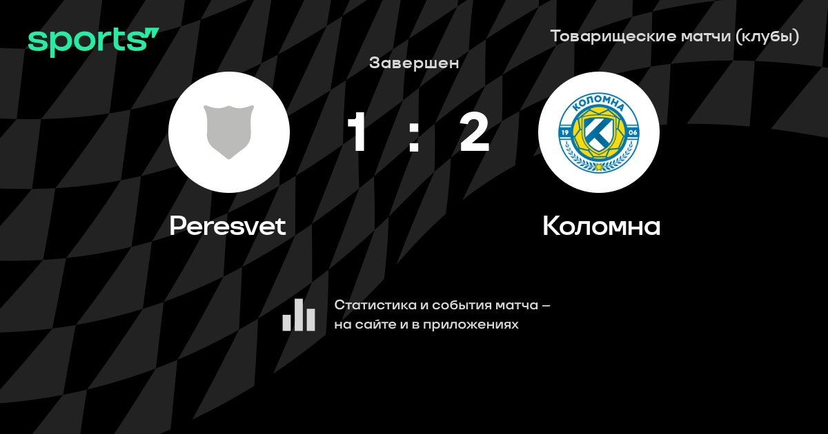 Коломна не выигрывает в 6 последних матчах в гостях в турнире «Товарищеские матчи (клубы)»