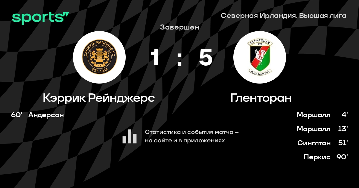 Кэррик Рейнджерс – Гленторан: Гленторан не пропускает в 1 из 10 последних матчей против этого соперника