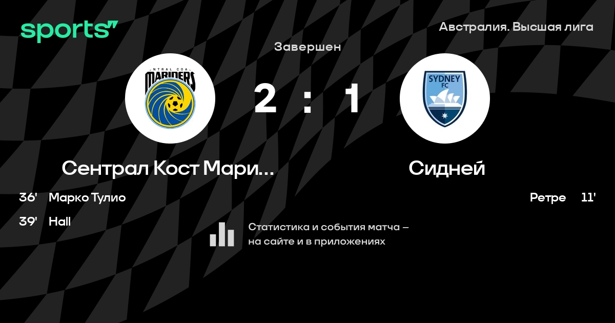 Сентрал Кост Мэринерс – Сидней: Сидней не проигрывает в 5 из 7 последних матчей против этого соперника в гостях