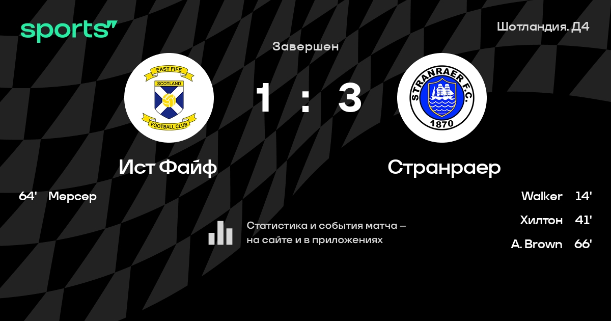 George O'Connor - Уотт, Girvan, Ross, McIntosh - Forrest, Brady, Aaron Brown, Walker, Хилтон - ДаффиЗапасные: Connolly, Ellis, Eze, Галлахер, Malcolm