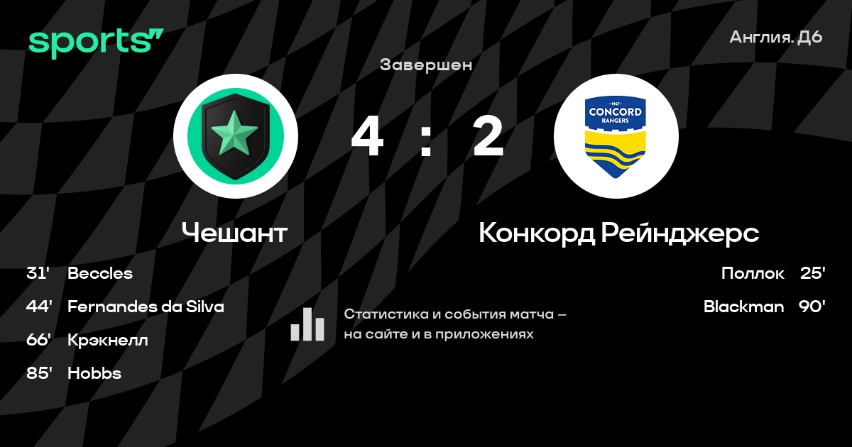 Чешант – Конкорд Рейнджерс: Конкорд Рейнджерс побеждает в 3 последних очных матчах