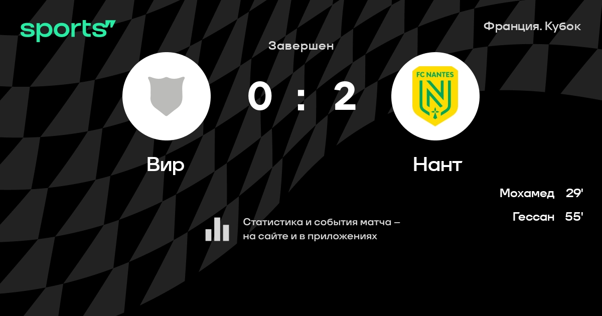 Результат прошлой игры в турнире «Кубок»: Вир – Кан 0:3. В последних 5 играх Вир забивает 6 голов. В последних 5 играх Вир пропускает 6 голов.
