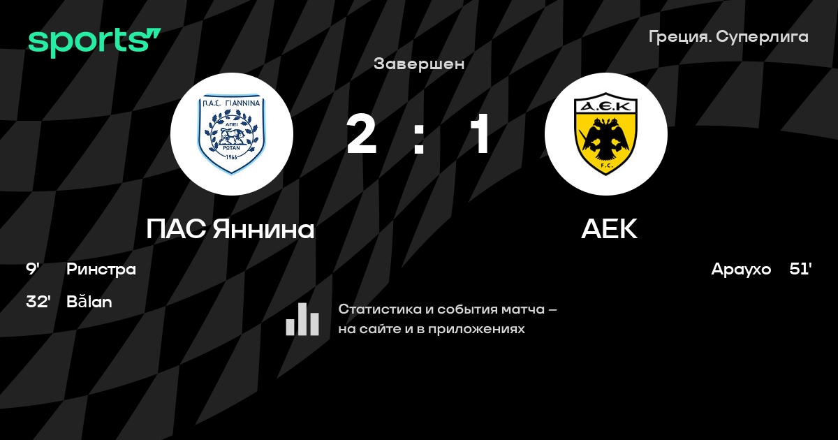 ПАС Яннина – АЕК: АЕК забивает в 6 последних матчах против этого соперника