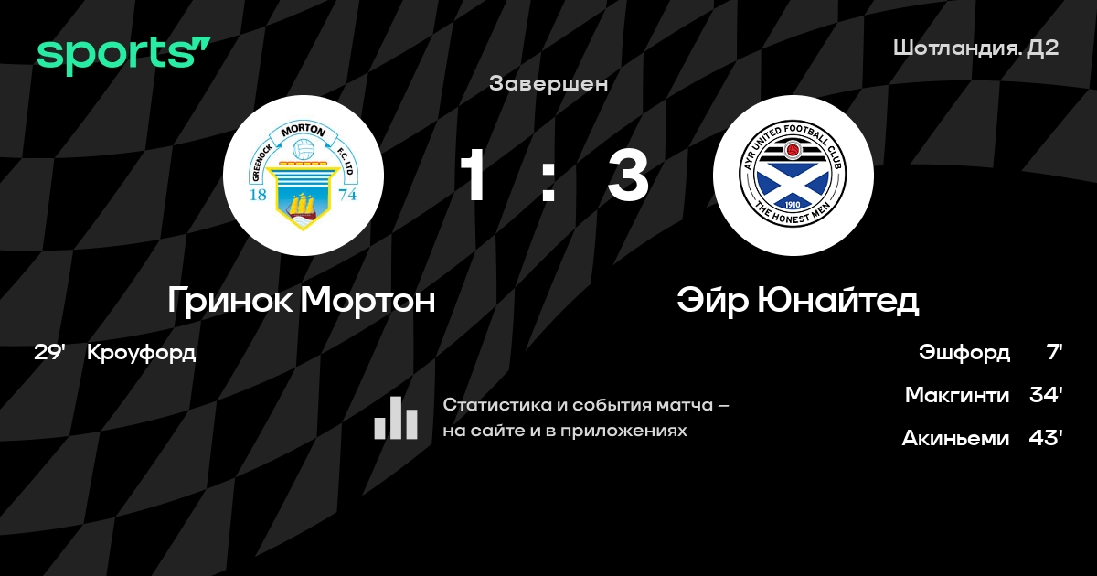 Гринок Мортон – Эйр Юнайтед: Эйр Юнайтед не проигрывает в 7 из 9 последних матчей против этого соперника в турнире «Чемпионшип»