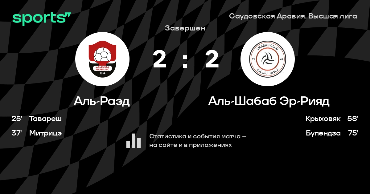 Аль-Раэд – Аль-Шабаб Эр-Рияд: Аль-Шабаб Эр-Рияд побеждает в 4 последних очных матчах