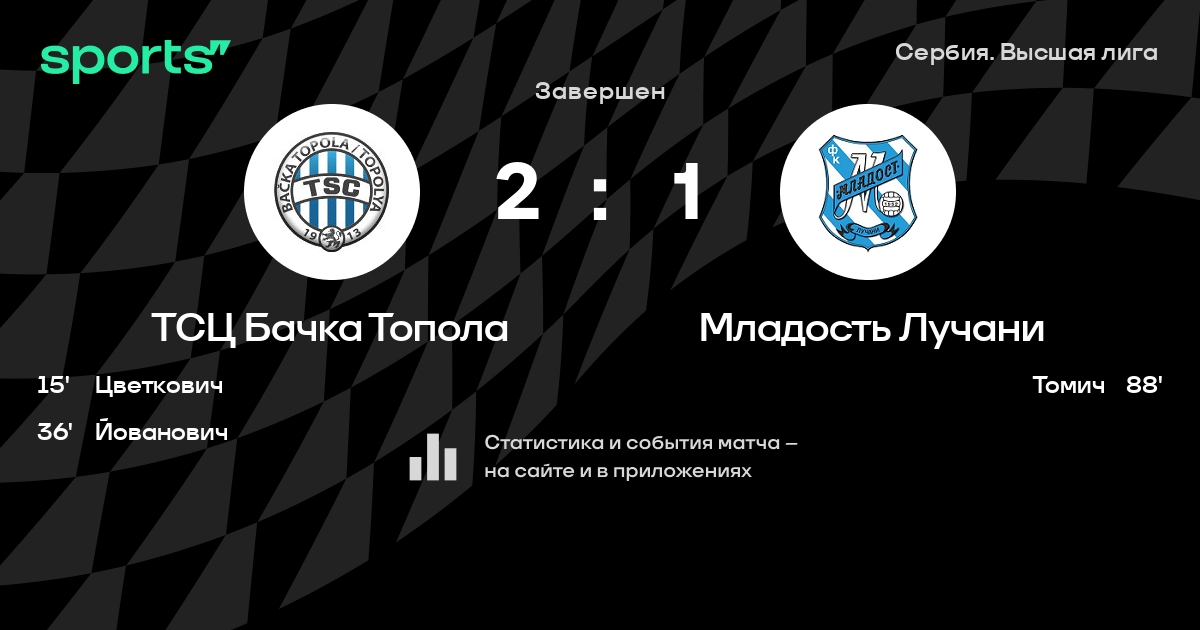 Бачка Топола – Младость Лучани: Бачка Топола побеждает в 3 последних очных матчах дома