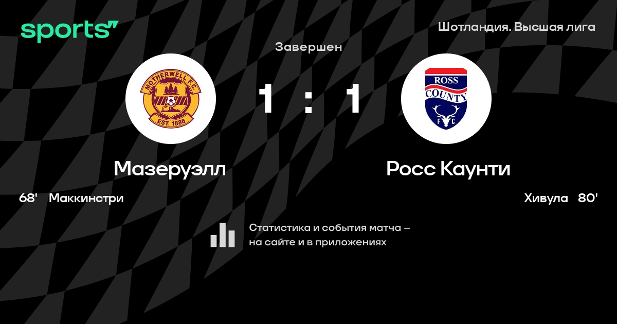 Мазеруэлл – Росс Каунти: Мазеруэлл забивает в 7 из 9 последних матчей против этого соперника