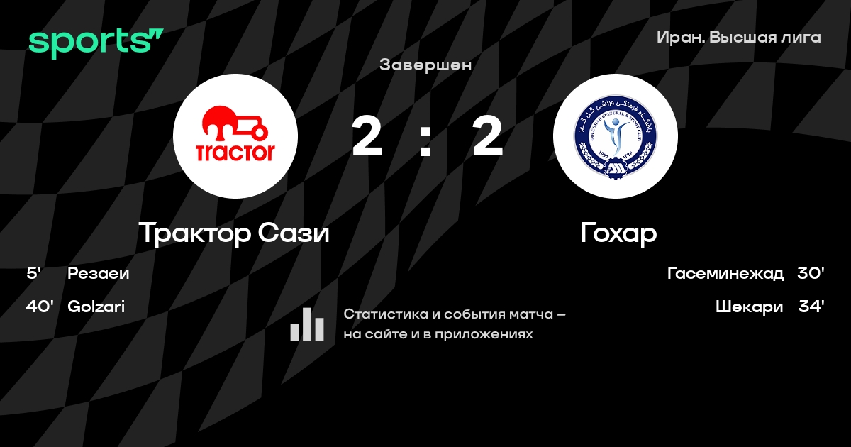 Трактор Сази – Гохар: Трактор Сази забивает в 7 из 9 последних матчей против этого соперника