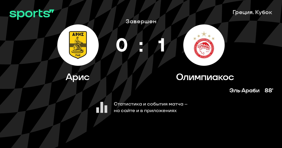 Арис – Олимпиакос: Олимпиакос не проигрывает в 5 последних матчах против этого соперника в турнире «Кубок»