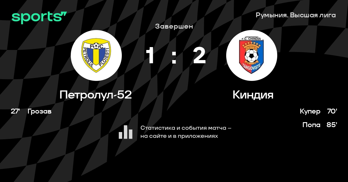 Петролул-52 – Киндия: Петролул-52 не проигрывает в 6 из 7 последних матчей против этого соперника