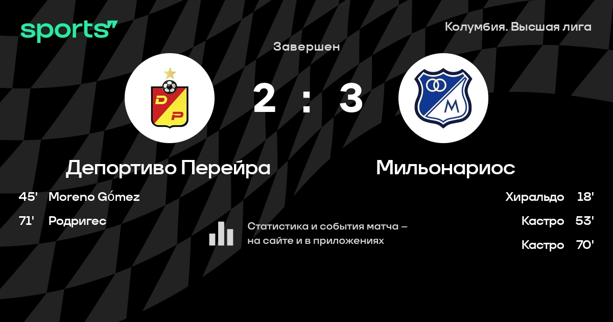 Депортиво Перейра – Мильонариос: Депортиво Перейра забивает в 5 из 7 последних матчей против этого соперника