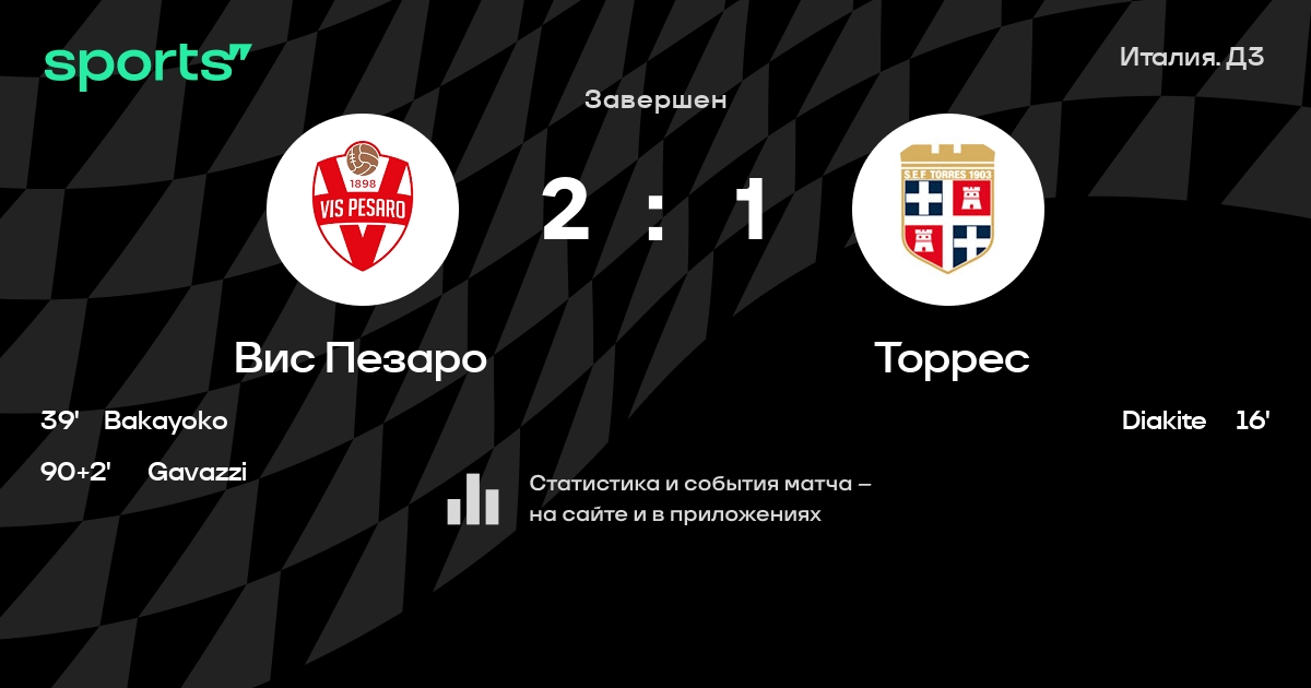 Вис Пезаро – Торрес: Торрес не проигрывает в 6 последних матчах против этого соперника