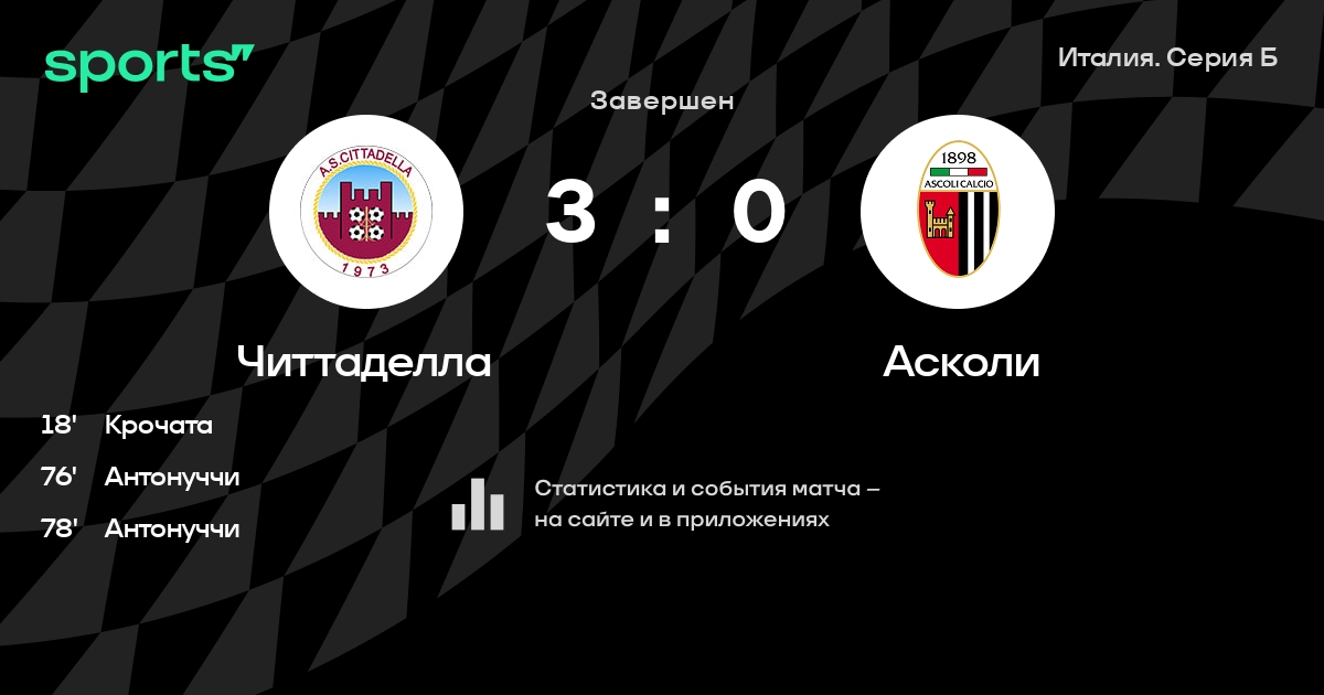 Читтаделла – Асколи: Читтаделла не пропускает в 3 последних матчах против этого соперника