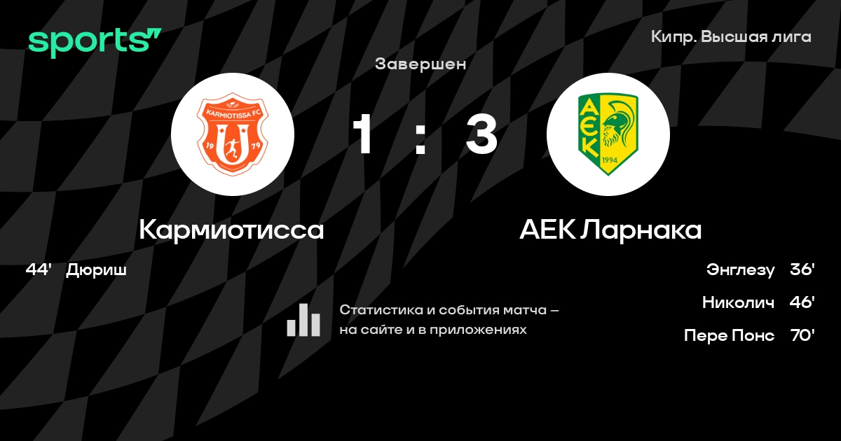 Кармиотисса – АЕК Ларнака: АЕК Ларнака не пропускает в 3 последних матчах против этого соперника