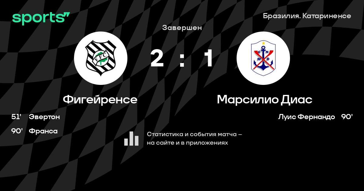 Фигейренсе – Марсилио Диас: Марсилио Диас не проигрывает в 6 из 8 последних матчей против этого соперника в турнире «Лига Катариненсе»