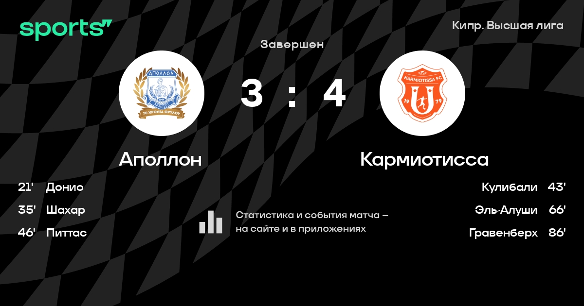 Аполлон – Кармиотисса: Аполлон не проигрывает в 8 из 9 последних матчей против этого соперника