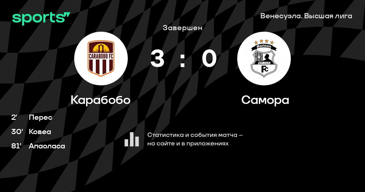 Карабобо – Самора: Самора не проигрывает в 8 из 10 последних матчей против этого соперника