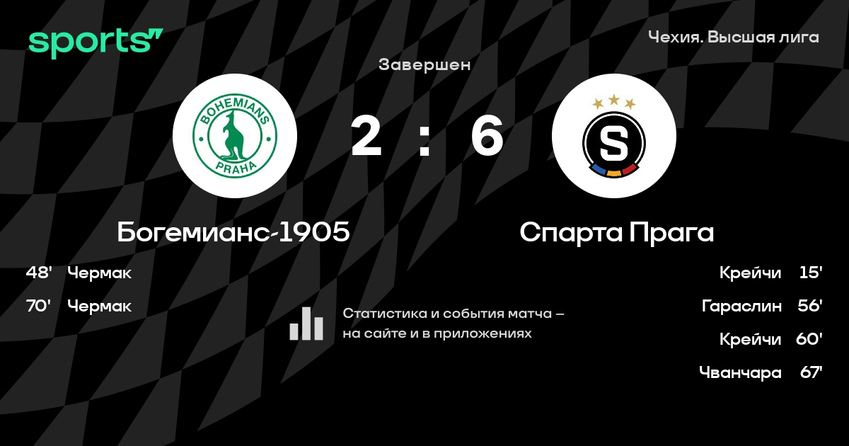 Богемианс-1905 – Спарта Прага: Спарта Прага забивает в 4 последних матчах против этого соперника