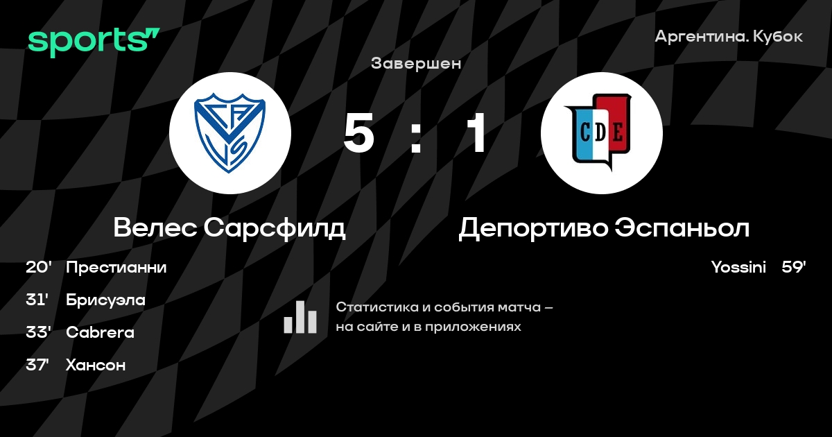 Трансляция Велес Сарсфилд - Депортиво Эспаньол