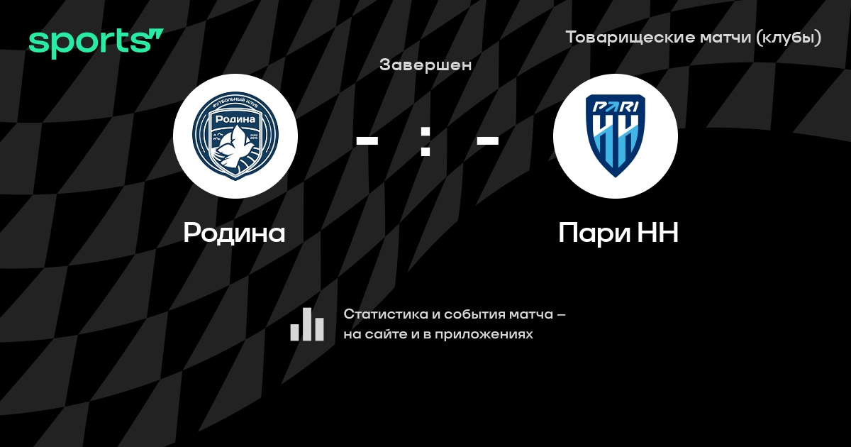 Результат прошлой игры в турнире «Товарищеские матчи (клубы)»: Уфа – Родина 0:0. Родина не проигрывает в 3 последних матчах в рамках турнира «Товарищеские матчи (клубы)». Родина не пропускает в 3 последних матчах в турнире «Товарищеские матчи (клубы)». В последних 5 играх Родина забивает 3 голов. В последних 5 играх Родина пропускает 2 голов.