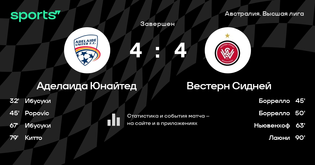 Трансляция Аделаида Юнайтед - Вестерн Сидней