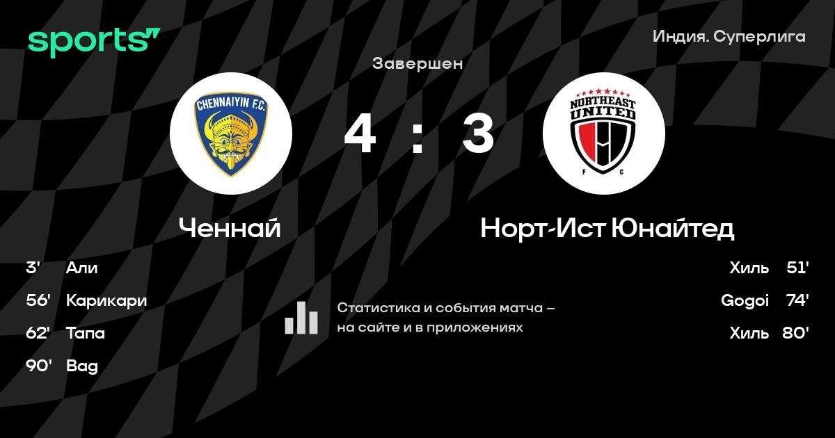Трансляция Ченнай - Норт-Ист Юнайтед