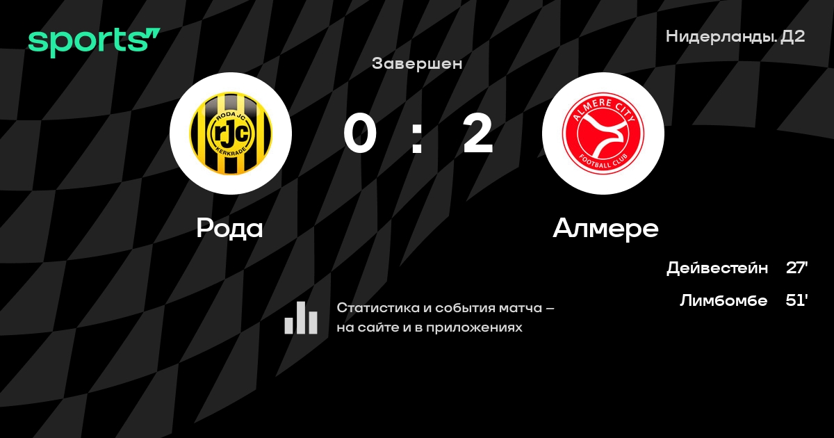 Рода – Алмере: Алмере не проигрывает в 7 из 9 последних матчей против этого соперника