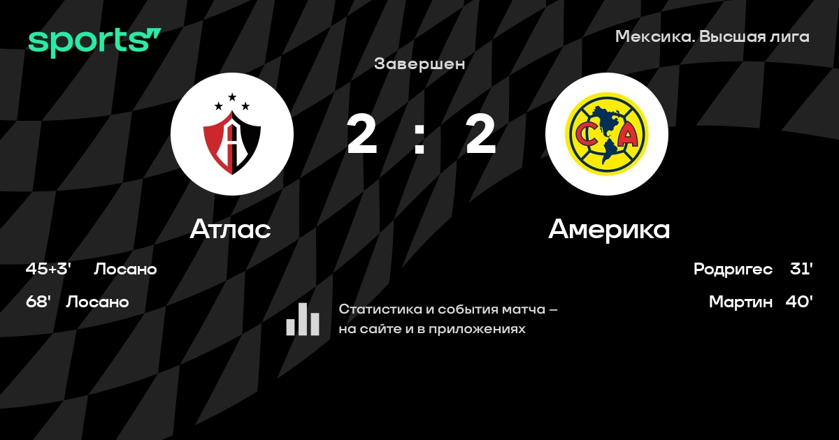Атлас – Америка: Америка не пропускает в 1 из 7 последних матчей против этого соперника