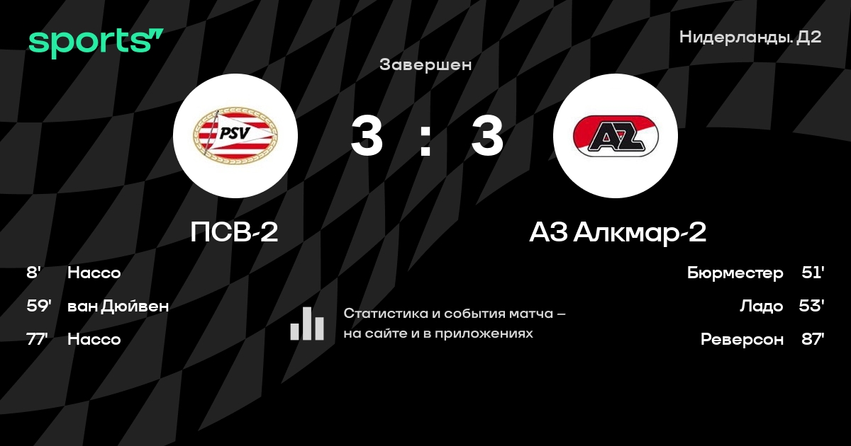 ПСВ-2 – АЗ Алкмар-2: ПСВ-2 забивает в 5 из 7 последних матчей против этого соперника