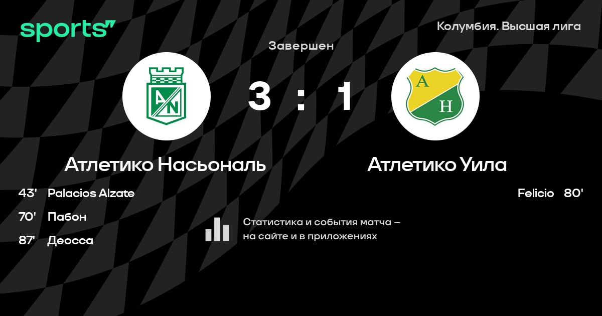 Трансляция Атлетико Насьональ - Атлетико Уила
