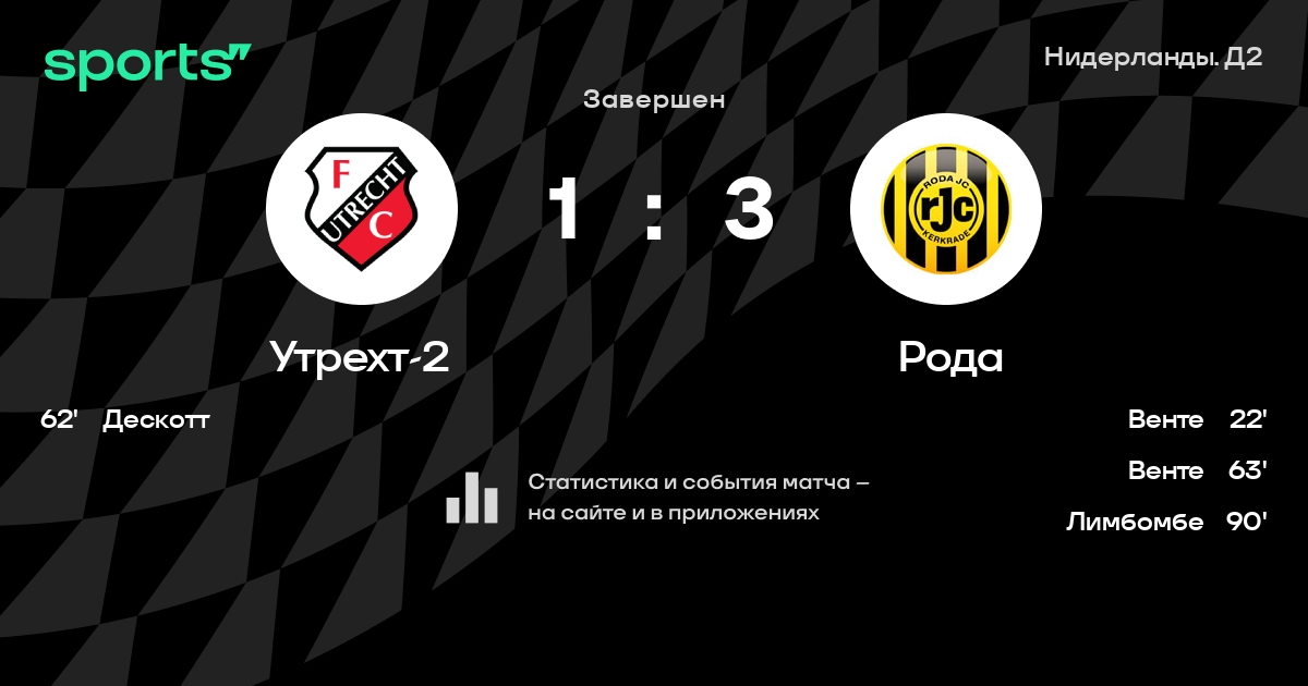 Утрехт-2 – Рода: Рода побеждает в 4 последних очных матчах