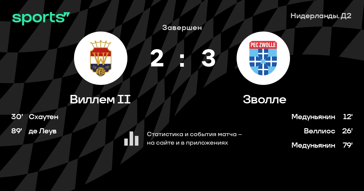 Виллем II – Зволле: Зволле не проигрывает в 5 из 7 последних матчей против этого соперника