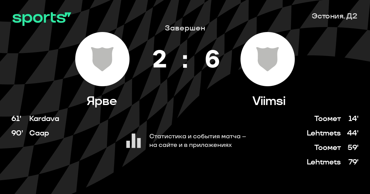 Armas - Sander Tovstik, Aleksander Ojamets, Laidvee, Kala - Karl Erich Kaljuvere, Johann Kõre, Кримм, Luts, Тоомет - Gregor LehtmetsЗапасные: Vigla, Valkna, Ollik, Mägi, Jürimäe, Kollist, Laidvee, Enn