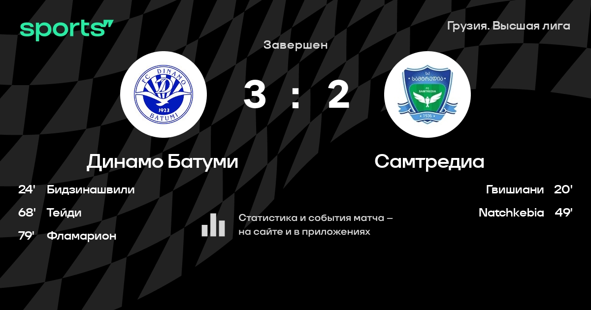 Динамо Батуми – Самтредиа: Динамо Батуми не проигрывает в 5 из 7 последних матчей против этого соперника