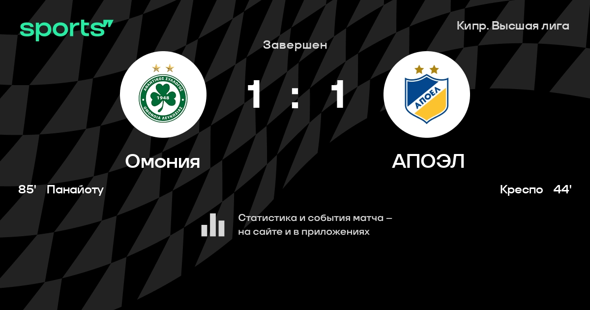 Омония – АПОЭЛ: АПОЭЛ не проигрывает в 7 из 9 последних матчей против этого соперника