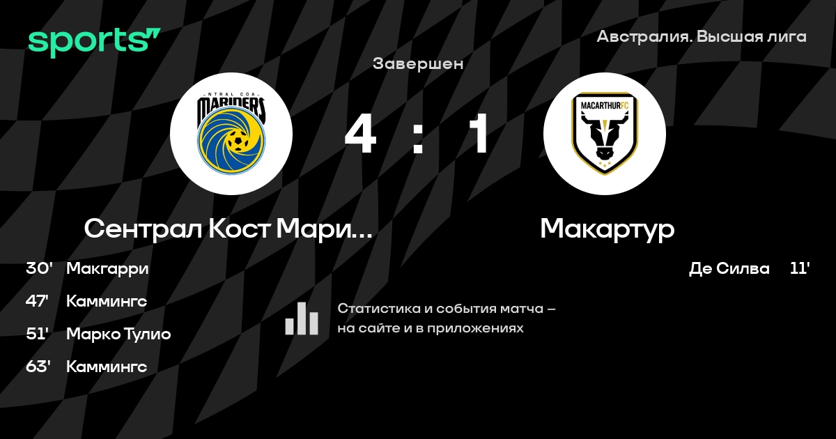 Трансляция Сентрал Кост Маринерс - Макартур