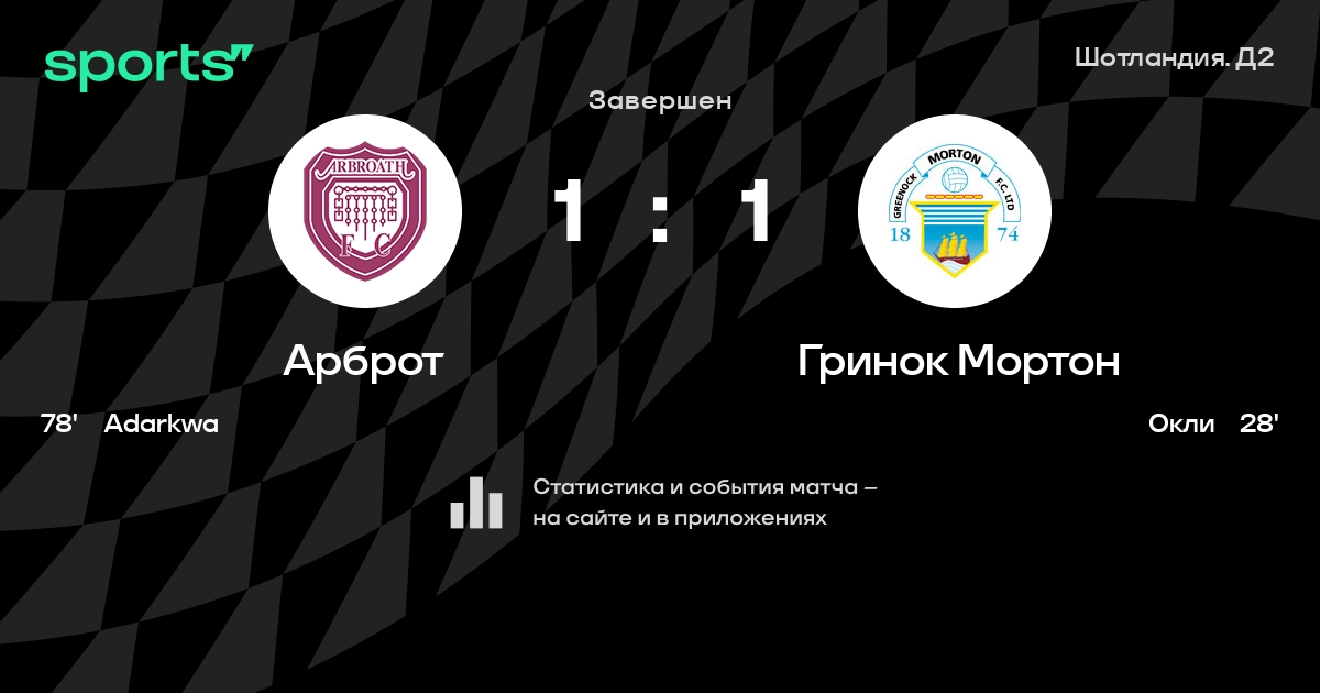 Арброт – Гринок Мортон: Гринок Мортон забивает в 3 последних матчах против этого соперника