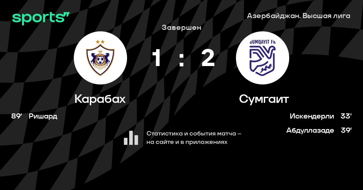 Карабах – Сумгаит: Карабах забивает в 7 последних матчах против этого соперника