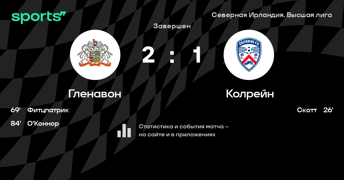 Гленавон – Колрейн: Колрейн не проигрывает в 6 из 8 последних матчей против этого соперника в гостях