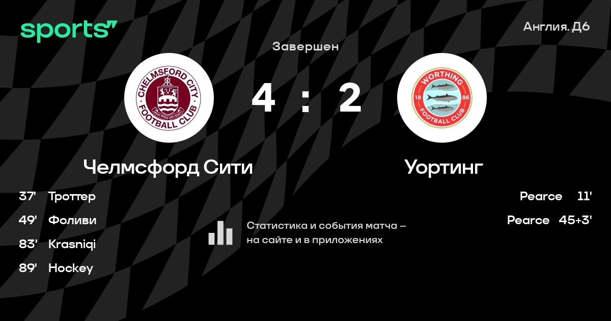 Трансляция Челмсфорд Сити - Уортинг