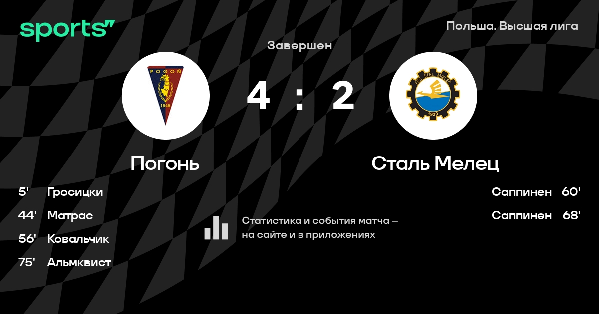 Погонь – Сталь Мелец: Погонь забивает в 3 последних матчах против этого соперника