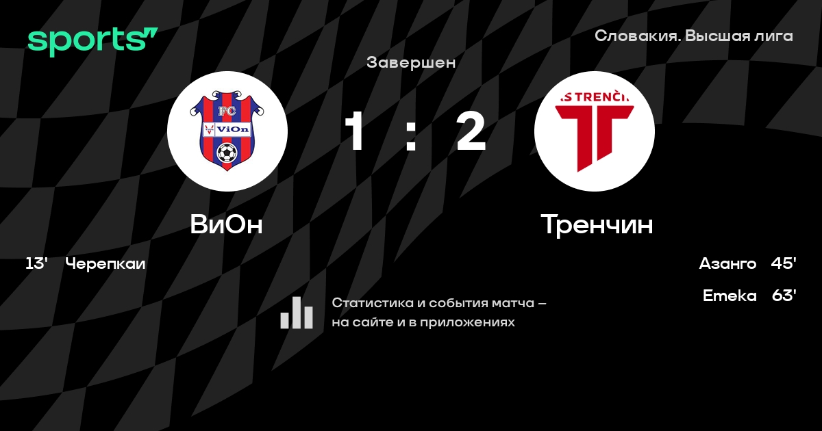 ВиОн – Тренчин: Тренчин не проигрывает в 6 из 8 последних матчей против этого соперника