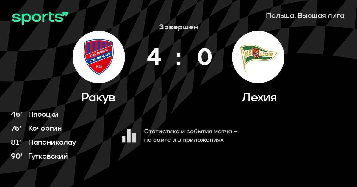 «Лехия» разгромлена в Познани, «Ракув» не сбавляет оборотов, а «Легия» не теряет надежды. Обзор 23-го тура Экстракласы