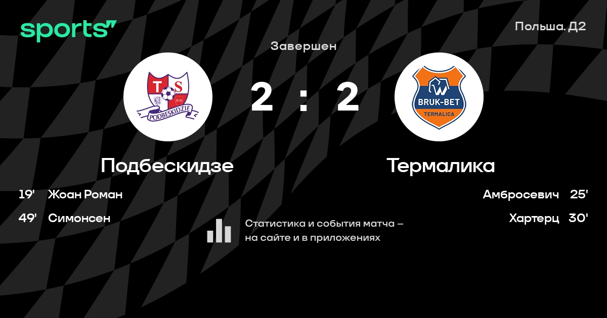 Подбескидзе – Термалика: Термалика забивает в 6 из 8 последних матчей против этого соперника