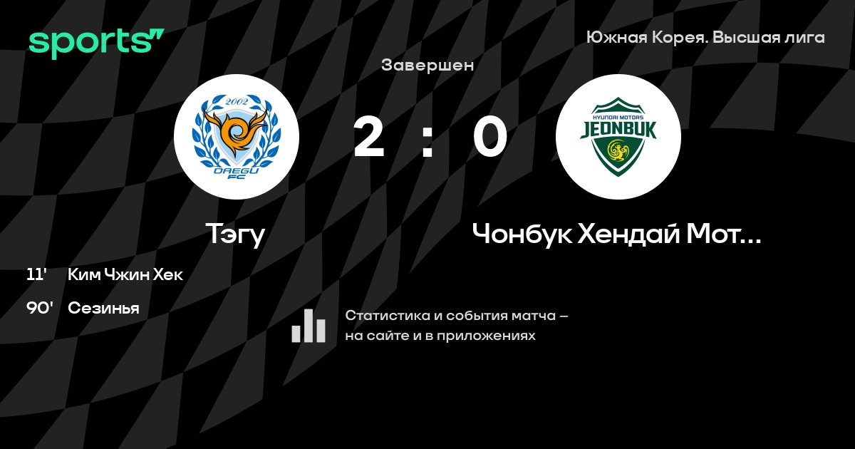 Тэгу – Чонбук Хендай Моторс: Чонбук Хендай Моторс не проигрывает в 6 последних матчах против этого соперника